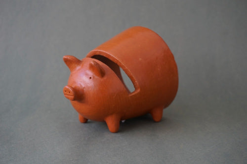 Beber de un recipiente de barro es uno de los mejores (y más antiguos) placeres de la vida. Esta peculiar jarra está inspirada en una mamá gallina y sus pollitos, animales que alegran el patio de la familia Bautista.